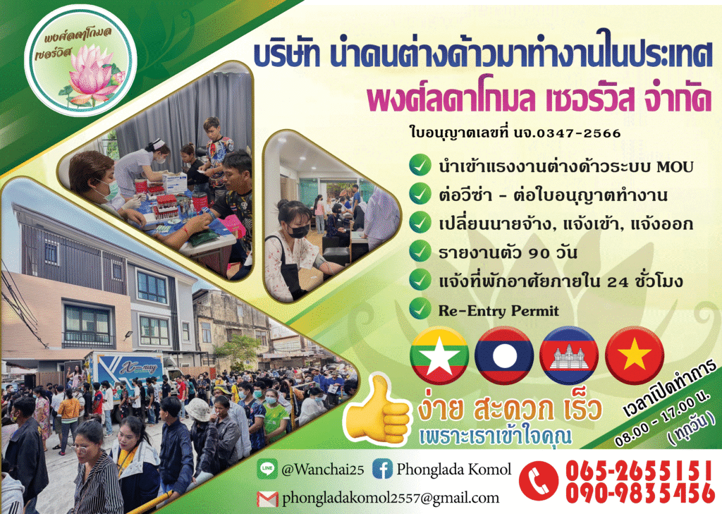บริษัท นำคนต่างด้าวมาทำงานในประเทศ พงศ์ลดาโกมล เซอร์วิส จำกัด